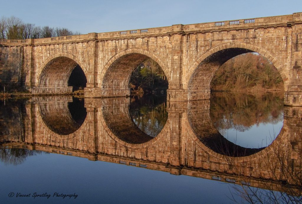 This is the Lune Aqueduct which carries the Lancaster canal over the river Lune in Lancaster, Lancashire , England. On this day there wasnāt even a breeze .