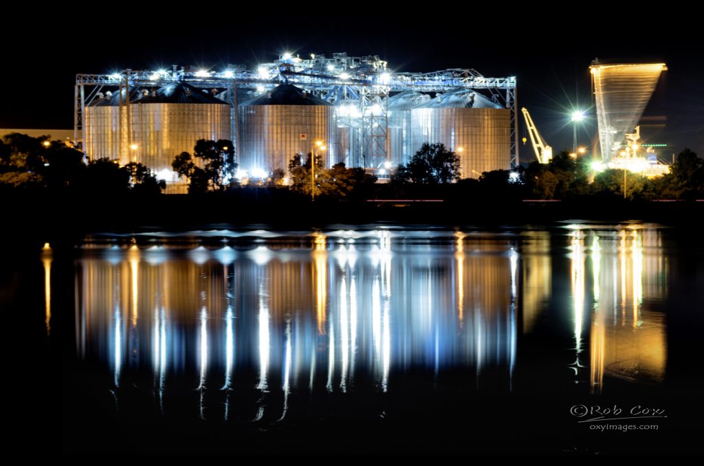 A grain facility at Bunburyās inner port. The night was unusually calm so made the most of the glassy surface of Leschenault Inlet.Ā https://www.oxyimages.com/welcome